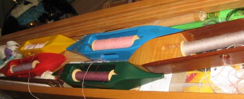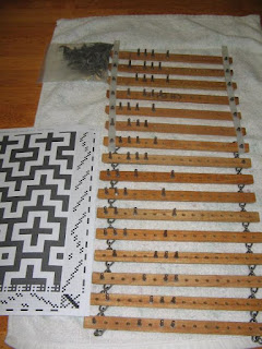 The current challenge is that I'm not finished with this piece and I have already warped the next loom. Here are the dobby bars...